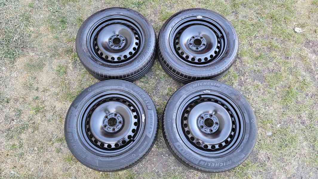 Ford Mondeo, Focus, C-Max letní kola pneumatiky 205/55 R16 plechové disky, ráfky 6,5Jx16 5x108 ET52,5 střed 63,3mm, cena je za sadu 4 kusů, vyzvednutí Kralupy, sada letních pneumatik, disků na Focuse, prodej, prodám, 205/55/16, 205 55 16.