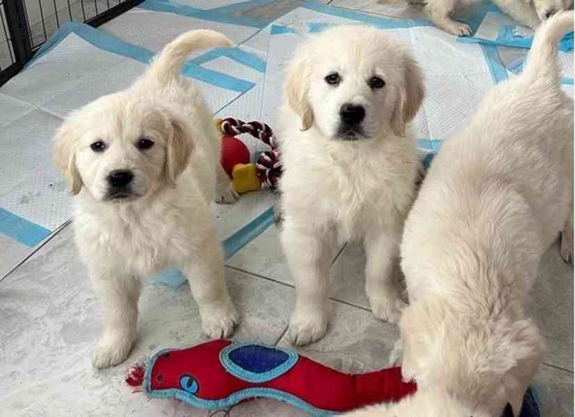 Nádherná štěňata zlatého retrívra. Jsou dobře vycvičená a milují si hrát s dětmi a dalšími domácími mazlíčky. Jsou veterinární kontrolou a doručí se spolu s veterinárními dokumenty a veterinární knížkou. V případě zájmu mě kontaktujte s fotografií štěněte.