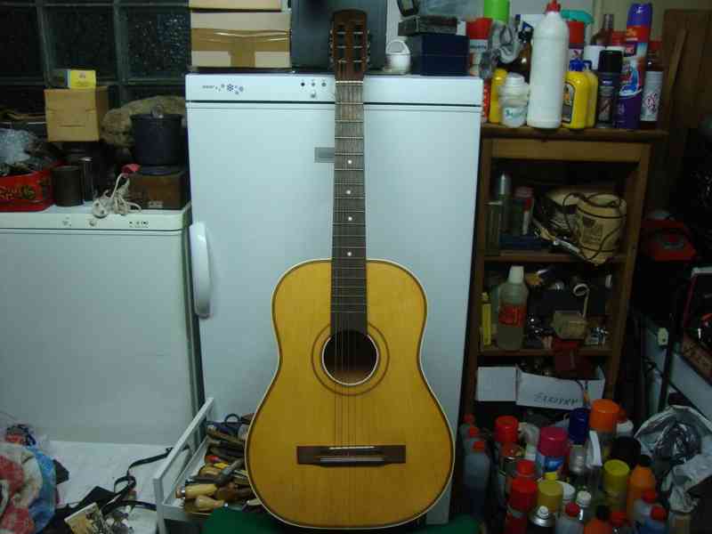 Prodám tuto kytaru pro začátečníka, nebo na tramp, vodu či k ohni, aby se o ni člověk nemusel bát. Kytara má všechny struny, bez prasklin, krk také drží. Dobrá na příležitostné hraní. Velikost celková délka 90 cm, šířka 34 cm. Mechaniky fungují, dá se ladit.