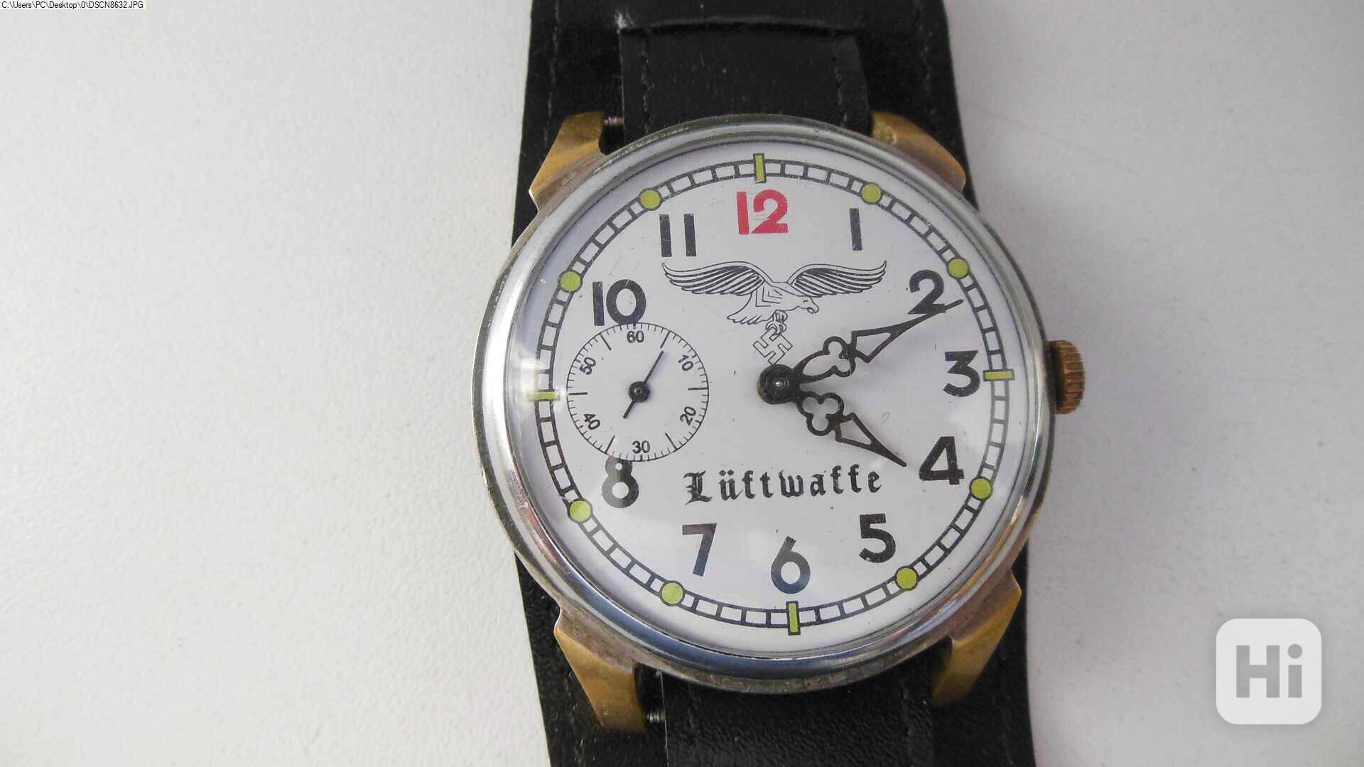 Velké hodinky Luftwaffe, včetně nového řemínku, původ hodinek neznám, průměr je 45 mm, funkční, délka chodu a přesnost nesledována, sledujte i mé ostatní nabídky, platí až do zmazání inzerátu. Žádná propagace, slouží pouze pro sběratelské účely.