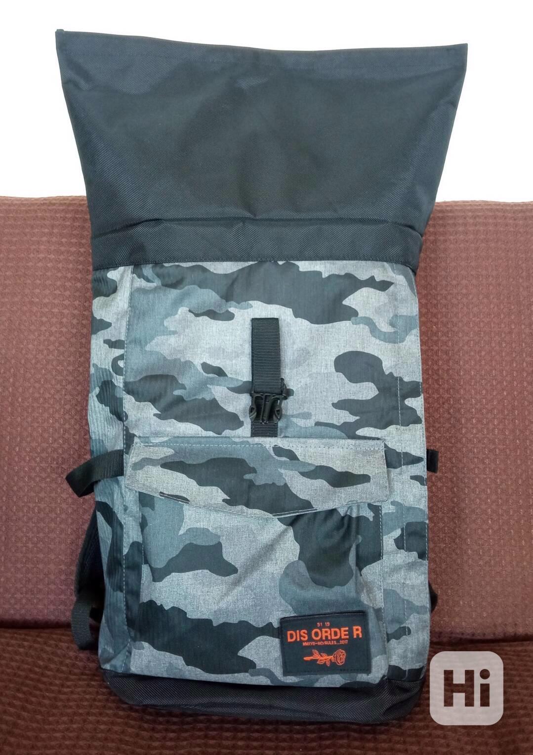 - Horní část batohu se rozšiřuje pro dlouhé předměty a skládá se pro kompaktnost, přičemž se fixuje sponou.