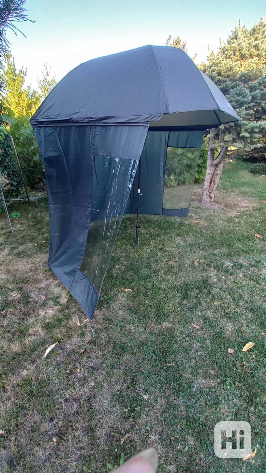Prodáme rybářský deštník s odnímatelnou bočnicí čtvercového tvaru o průměru 2,2 m. Rozevřený pro účel fotek, jinak nepoužitý. Pouze osobní převzetí, Praha 9, nebo na Praze -východ.