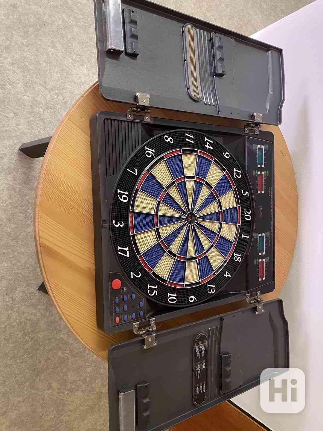 Elektronický terč na šipky s LCD displejem a dvířky pro uložení šipek. Plně funkční, vhodný pro domácí zábavu i menší hernu. Možnost hry pro více hráčů.