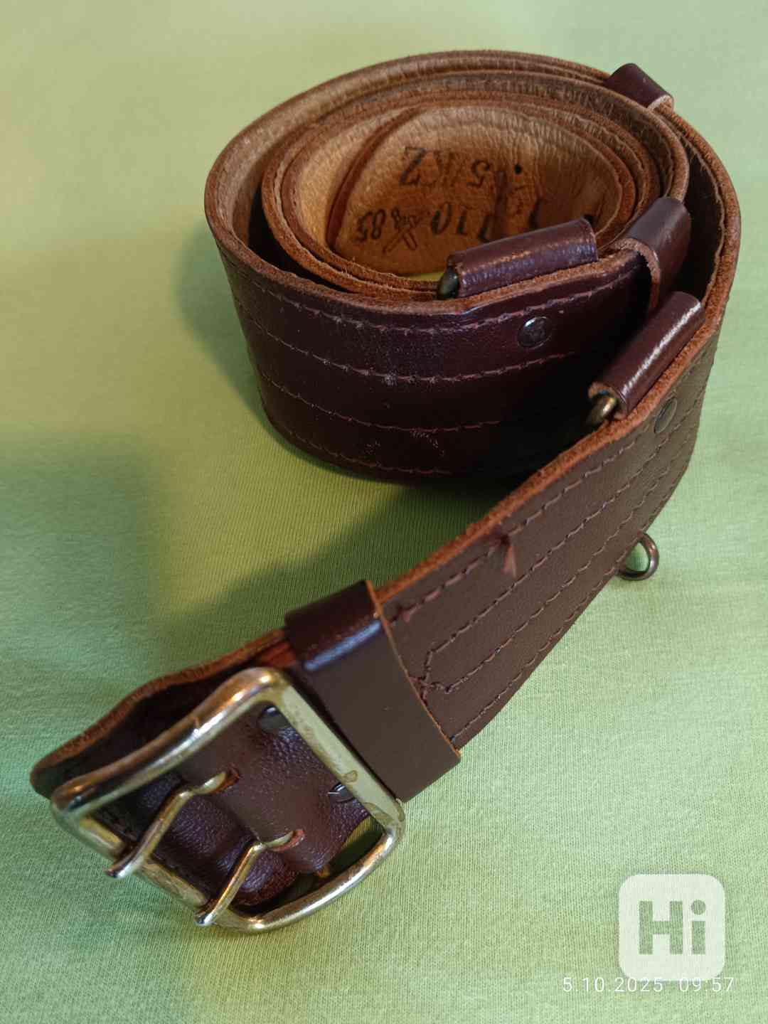 Prodám KOŽENÝ OPASEK HNĚDÝ ŠIROKÝ, armádní vz.85, málo používaný d.110cm,š 5 cm tl.cca 3.0 – 3,5 mm, zapínání na 2 trny. Na opasku jsou nýtované uchycení závěsů, očka na zavěšení dalších předmětů. Nejlépe osobní odběr Plzeň