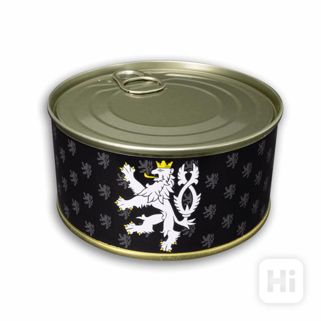 Dárková plechovka o velikosti 10 cm je doplněna barevnou etiketou. Otevírá se jako klasická konzerva. Tento originální způsob otvírání dárku je zajímavým zpestřením pro obdarovaného.